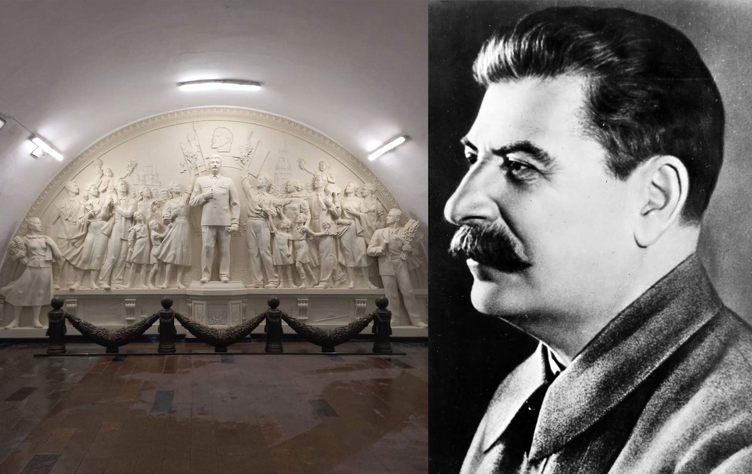 “Lider ve Komutana Halkın Minnettarlığı” adlı heykelin orijinali 1950 yılında Taganskaya istasyonunda açılmış, ancak 1960'larda de-Stalinizasyon çalışmaları kapsamında kaldırılmıştı.