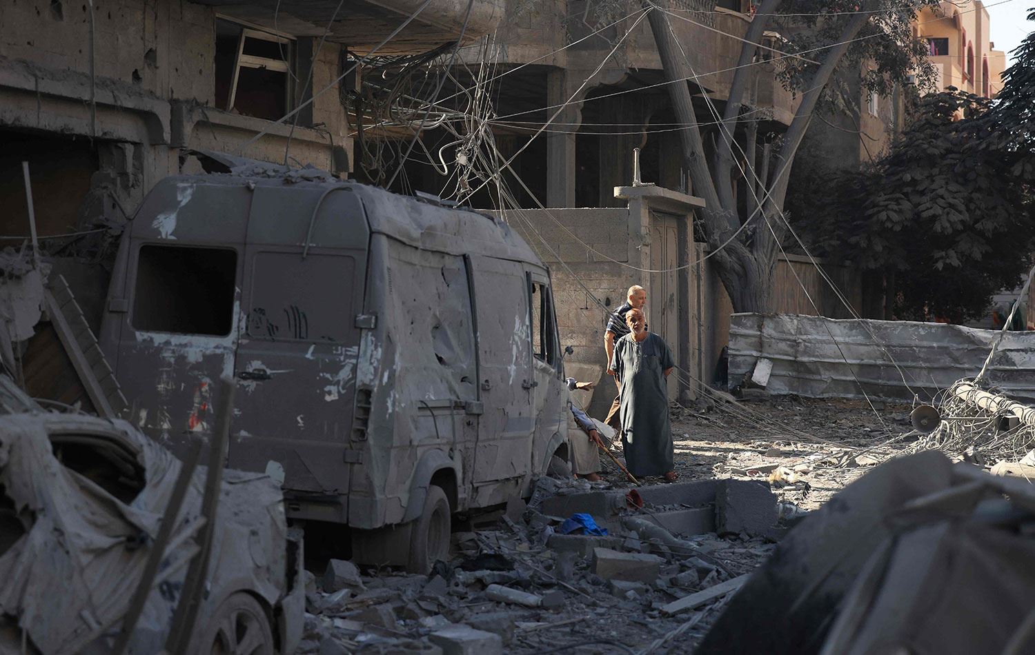 Gazze Şeridi'nin merkezindeki Nuseyrat mülteci kampındaki hasarı gösteren bir fotoğraf. (Mahmud HAMS / AFP)