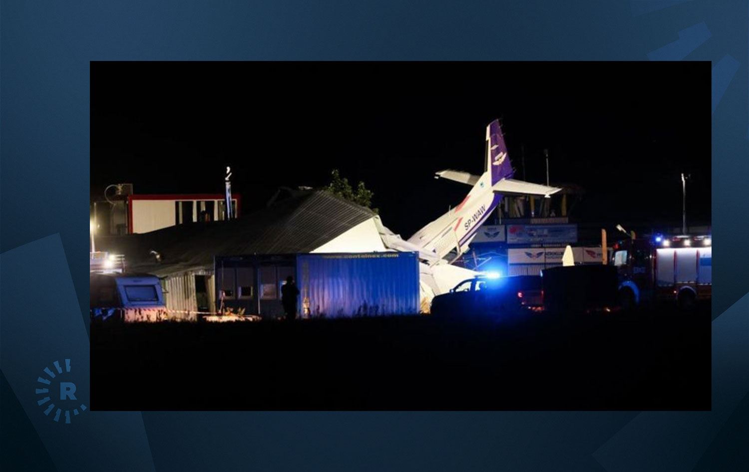 Polonya'nın başkenti Varşova yakınlarındaki Chrycynno Havaalanı'na iniş yapan Cessna 208 tipi uçak iniş sırasında kötü hava koşulları nedeniyle havaalanında bulunan hangarın üzerine düştü.