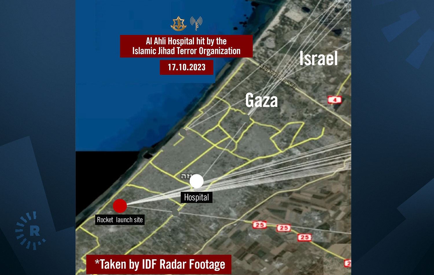 Haber Merkezi - İsrail ordusu, Gazze'deki El-Ehli Baptist Hastanesi'nin İslami Cihad tarafından vurulduğunu iddia ederek bunu kanıtladığını ileri sürdüğü bir radar haritası grafiği paylaştı.