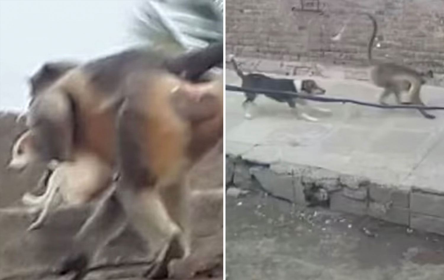 Bir grup maymun küçük bir Hint köyünde köpeklere karşı savaş başlattı.