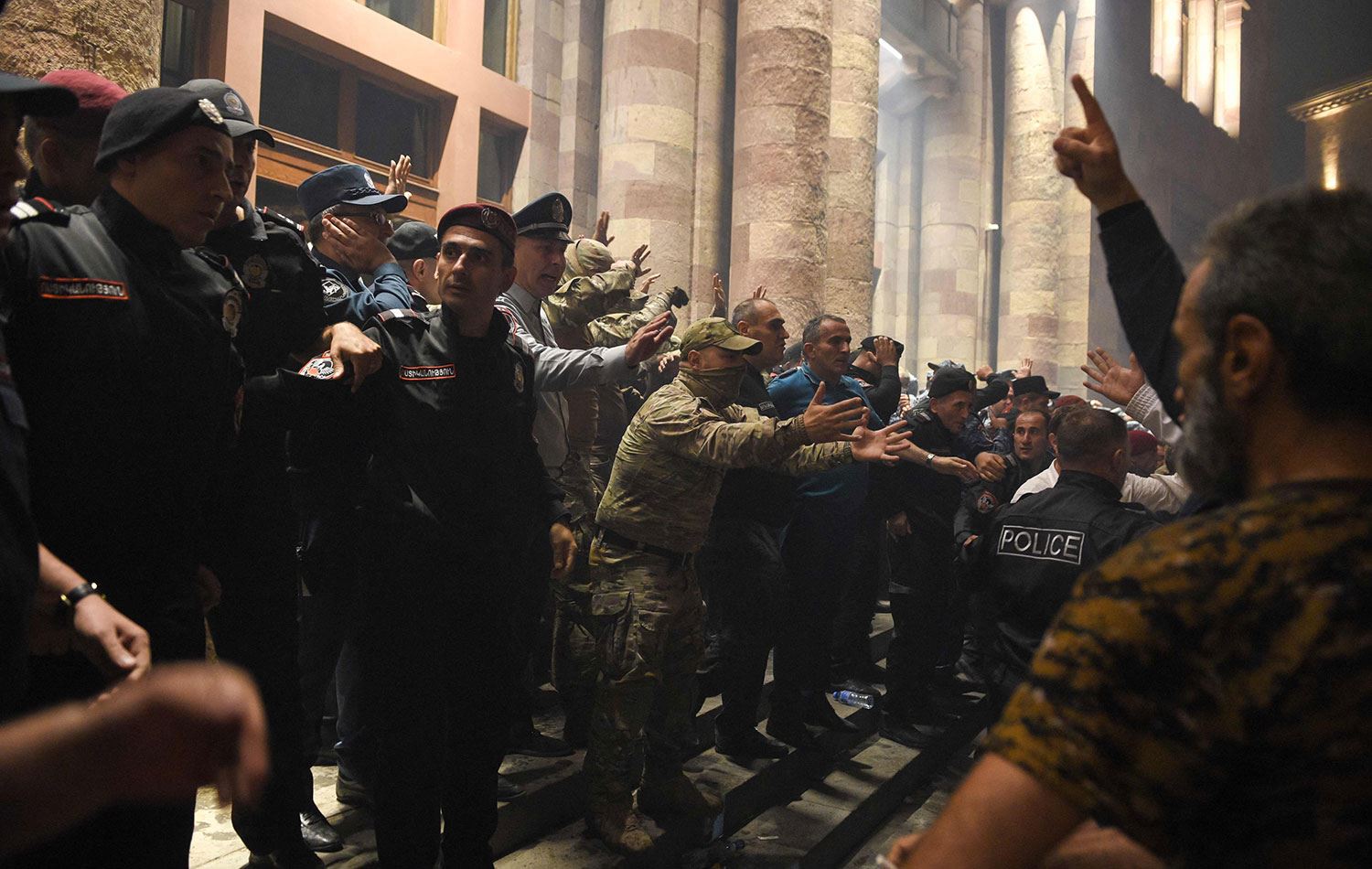 Ermenistan'ın resmi haber ajansı Armenpress'in haberine göre, Erivan'da hükümet binasının bulunduğu Cumhuriyet Meydanı'nda toplanan vatandaşlar ile güvenlik güçleri arasında zaman zaman arbede yaşandı. Arbedede bazı göstericiler yaralandı. Güvenlik güçleri, göstericilerin hükümet binasına yaklaşmaması için tedbir aldı.