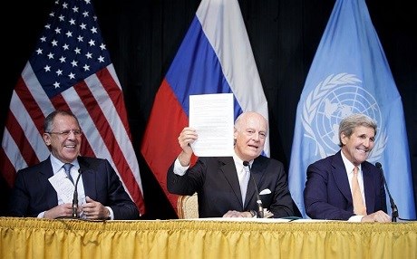 Basın toplantısında hem Kerry, hem de Lavrov, New York’ta yedi saat süren 17 ülke dışişleri bakanları ile BM, Arap Birliği, İslam Konferansı Teşkilatı ve Avrupa Birliği temsilcilerinin katılımı ile sağlanan anlaşmanın Cenevre Bildirgesi, Viyana süreci ile krizin politik yoldan çözümünü kapsadığına işaret etti.