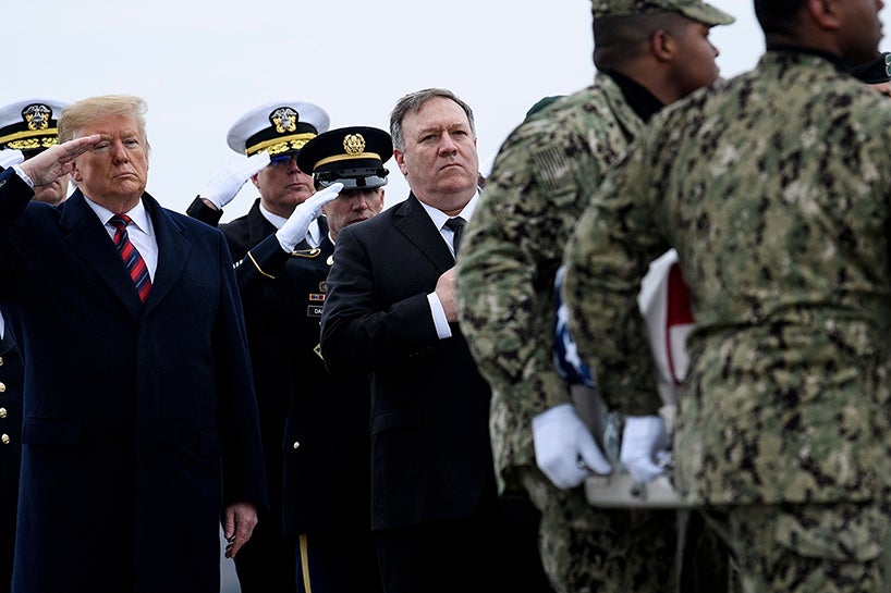 Törende ABD Başkanı Donald Trump, Dışişleri Bakanı Mike Pompeo ve ABD Savunmma Bakanı Patrick Shanahan da hazır bulundu.