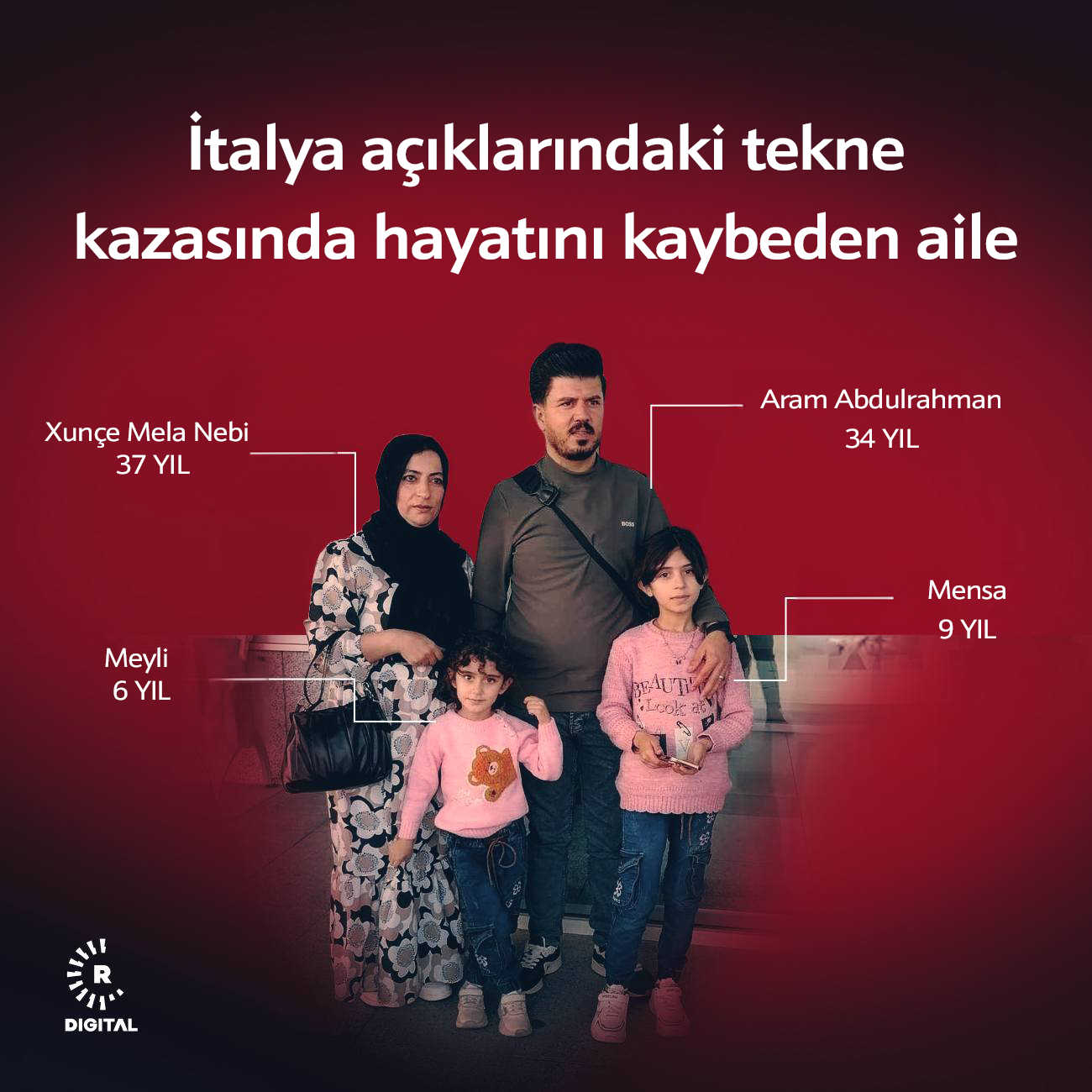 Xunçe Mela Nebi eşi Aram Abdulrahman, çocukları Mensa Aram ve Meyli Aram Roccella Jonica’da batan teknenin içindeydi.