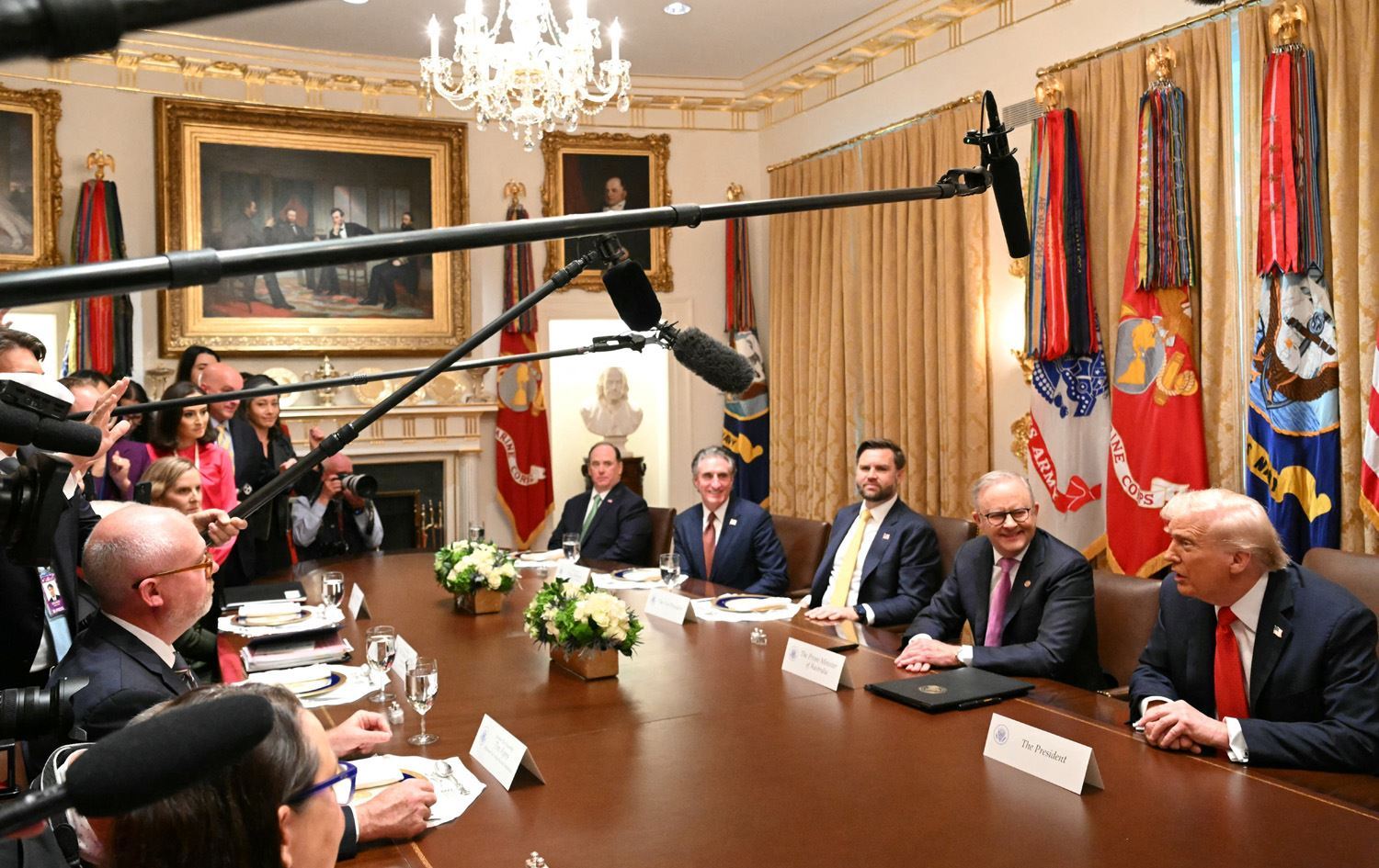 Olay, Başkan Trump'ın kıdemli danışmanlarıyla birlikte Avustralya Başbakanı Anthony Albanese ile toplantıda bulunduğu sırada yaşandı.