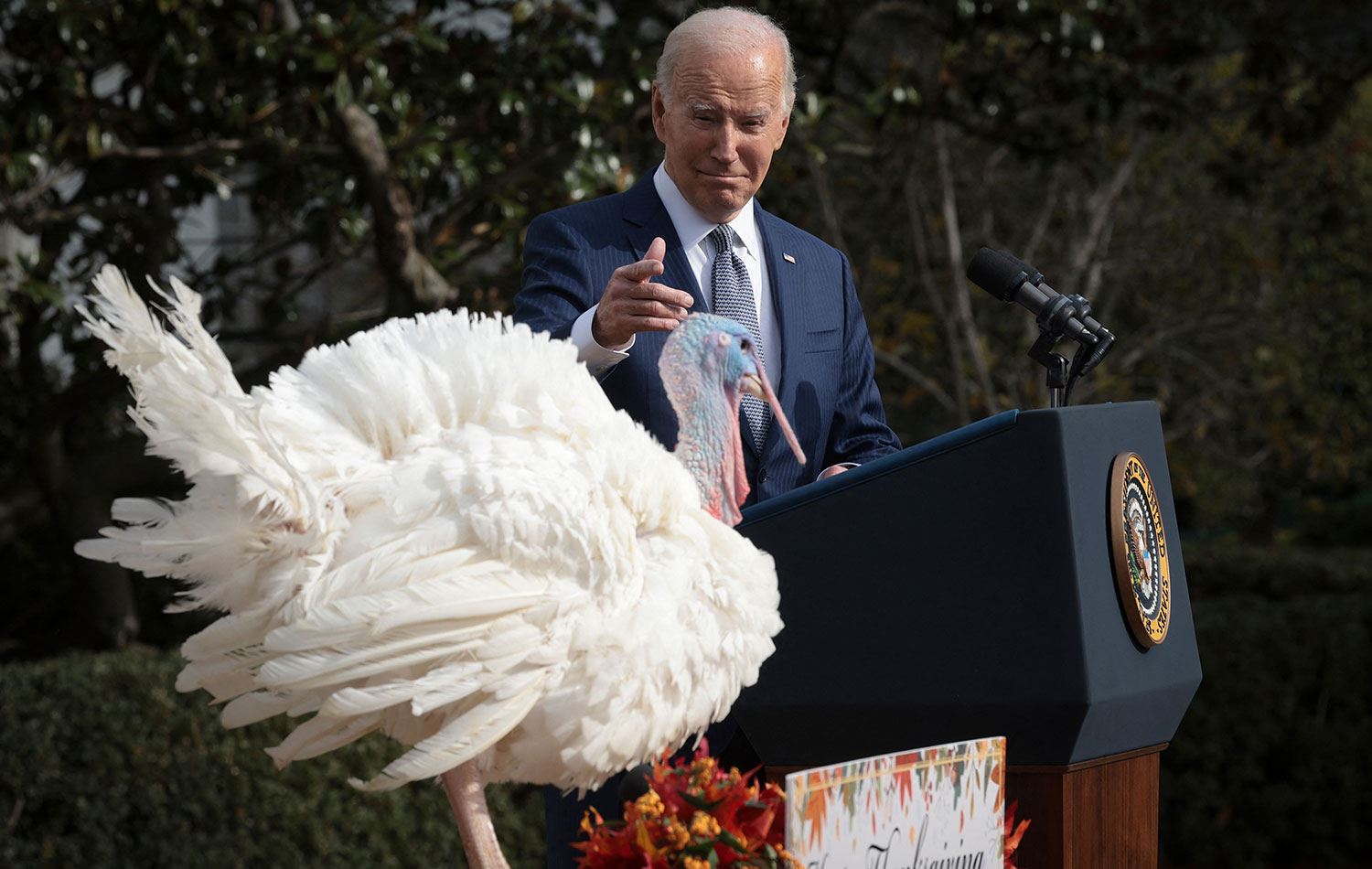 ABD Başkanı Joe Biden, Beyaz Saray'da düzenlenen törende Ulusal Şükran Günü hindileri Liberty (fotoğrafta) ve Bell'i affetti. / AFP