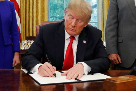 Trump, Huawei'yi kara listeye almayı öngören kararı imzalarken. Fotoğraf: Leah Mills / Reuters
