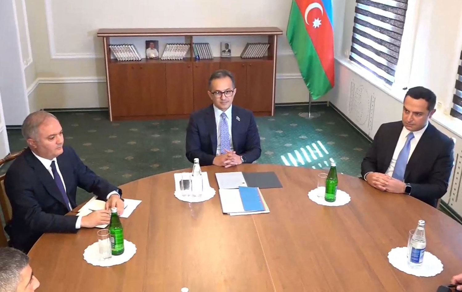 Azerbaycan devlet medyası tarafından dağıtılan görüntülerde, Karabağ’la ilgili onlarca yıldır süren anlaşmazlığın çözümü için Bakü'nün gönderdiği müzakerecilerle birlikte bir masa etrafında oturan Ermeni heyeti görülüyor.