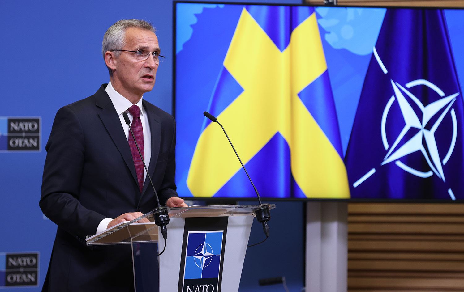 Stoltenberg, İsveç Başbakanı Ulf Kristersson ile NATO karargahında düzenlediği ortak basın toplantısında gazetecilerin sorularını yanıtladı.
