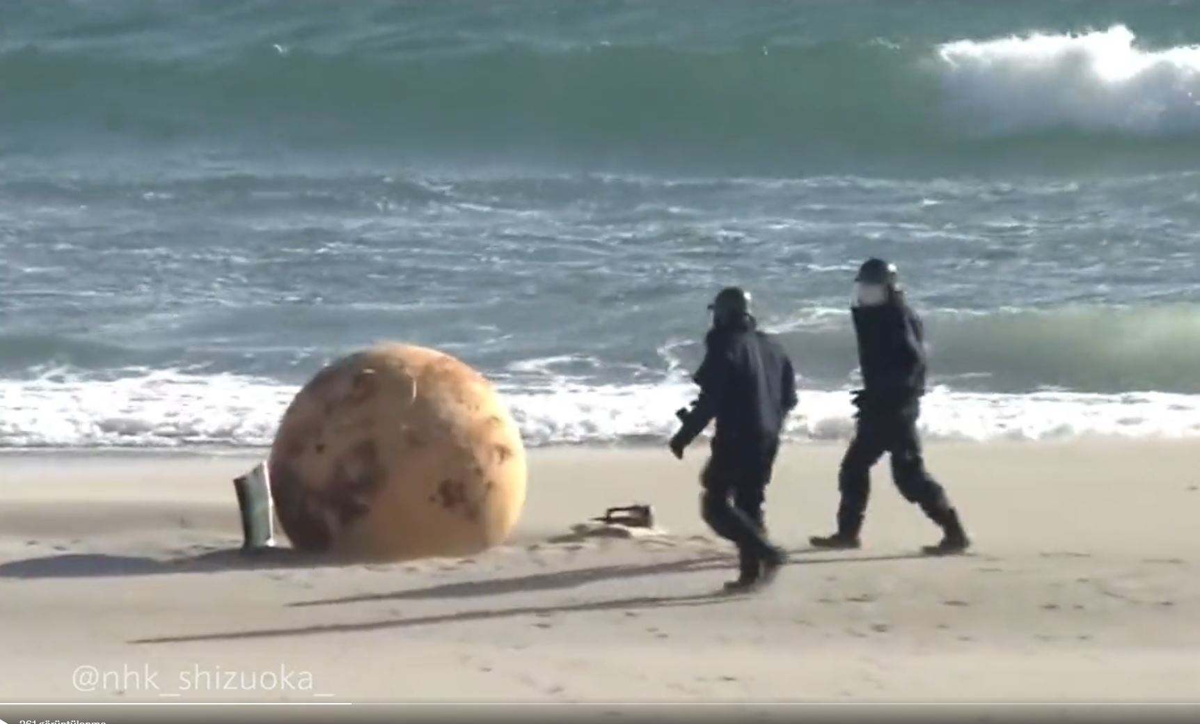#Japonya'nın Shizuoka Eyaletine bağlı Hamamatsu şehrindeki plajda bulunan gizemli bir top, polisin bölgeyi kordon altına almasına neden oldu pic.twitter.com/pD77vEjMry