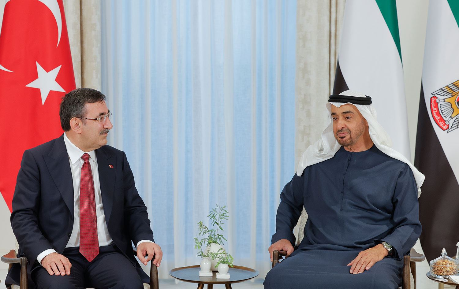 Haber Merkezi – Türkiye Cumhurbaşkanı Yardımcısı Cevdet Yılmaz ile Hazine ve Maliye Bakanı Mehmet Şimşek, çalışma ziyareti kapsamında Birleşik Arap Emirlikleri (BAE) Devlet Başkanı Muhammed bin Zayid Al Nahyan ile bir araya geldi.