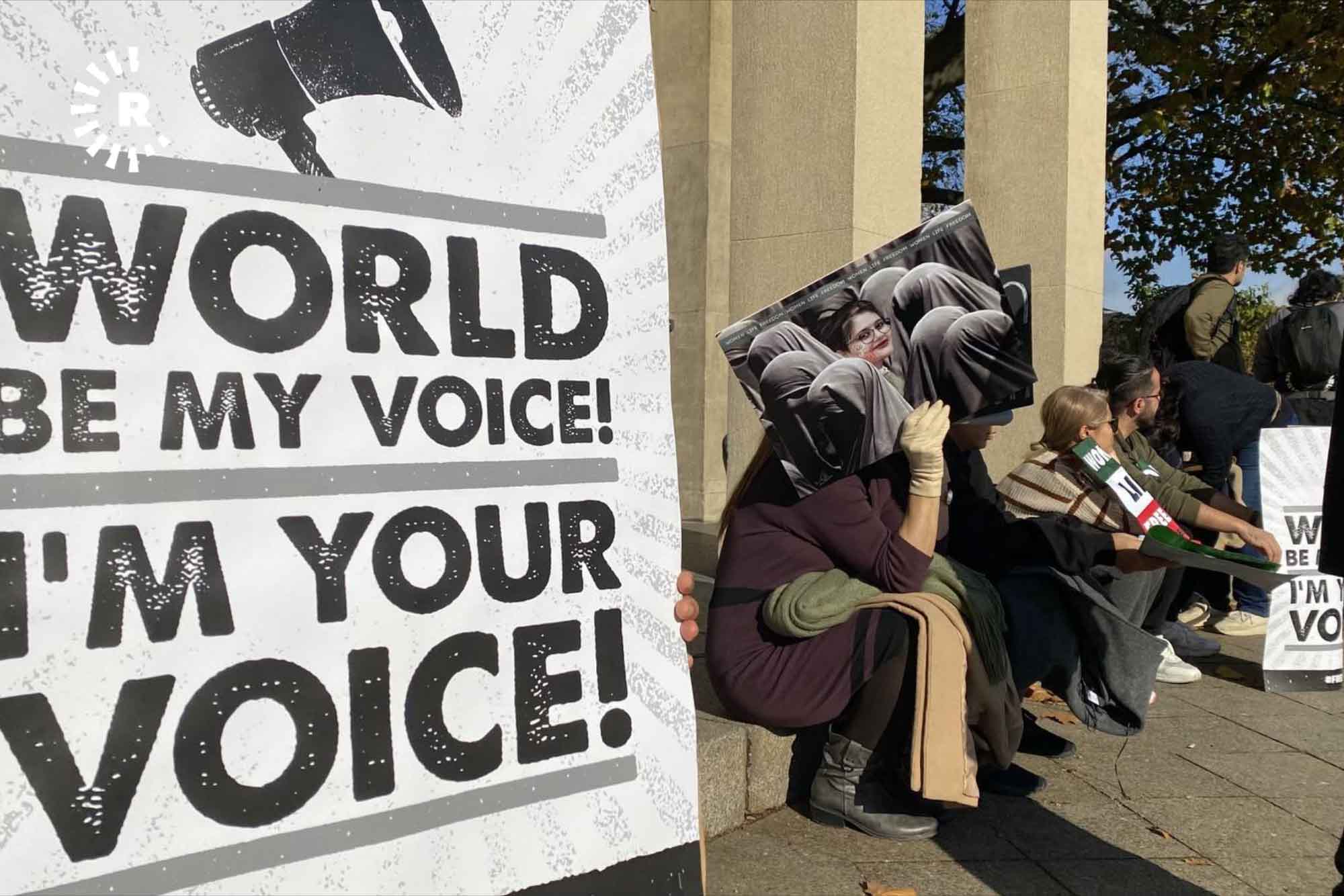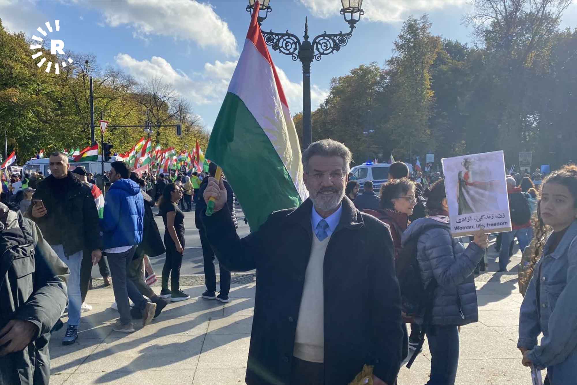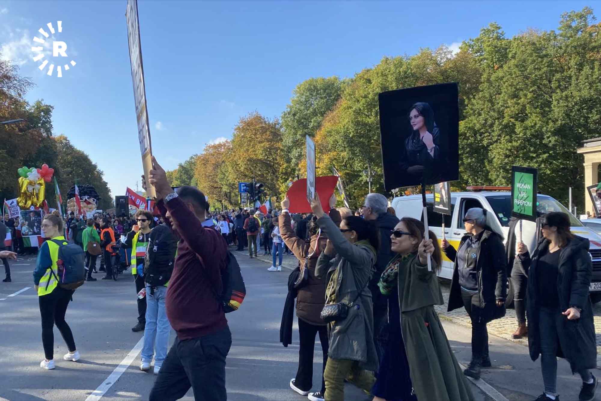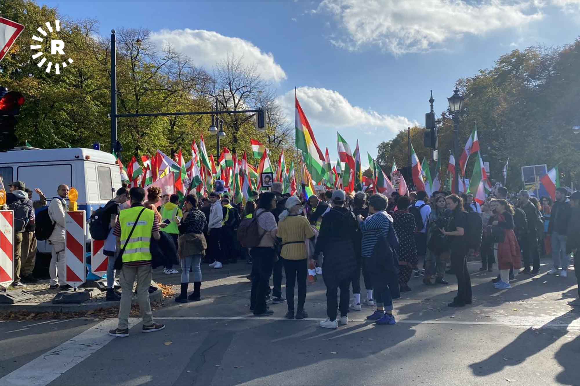 Bir grup Kürt gösterici Kürdistan Bayrağı açtı. “Jin, Jiyan, Azadî” sloganları attı ve İran ahlak polisi tarafından gözaltına alındıktan sonra yaşamını yitiren Kürt kadın Jina Emini ile gösterilerde yaşamını yitirenlerin fotoğrafları taşındı.
