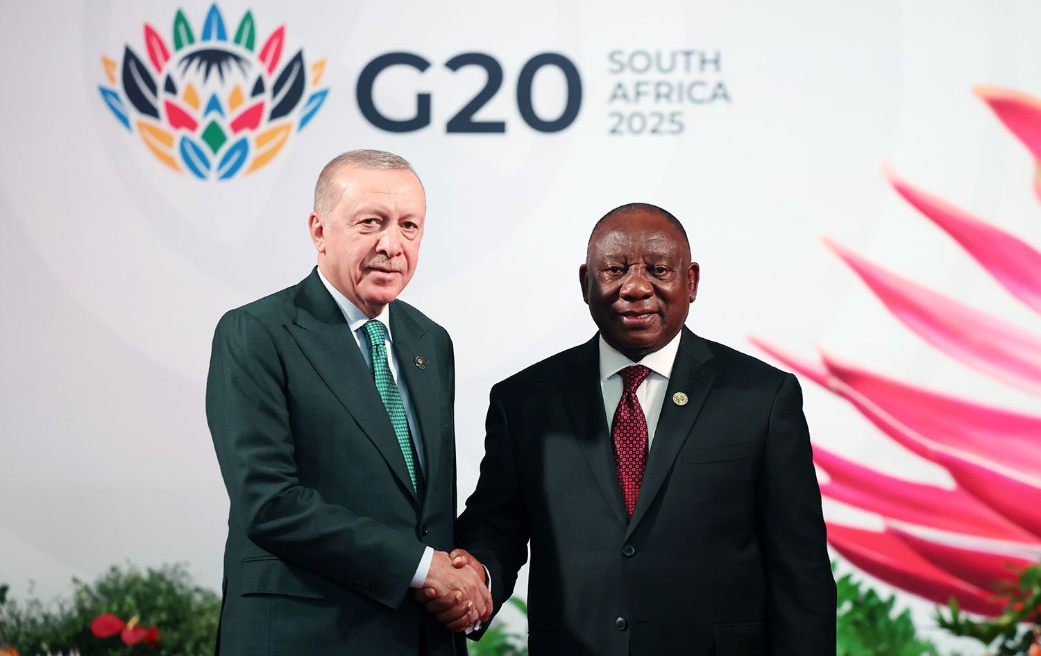 Zirvenin düzenlendiği Johannesburg Expo Center'a giden Erdoğan, G20'ye ev sahipliği yapan Güney Afrika Cumhurbaşkanı Cyril Ramaphosa tarafından karşılandı.