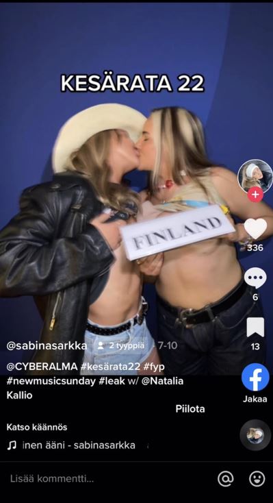 Sosyal medyada viral olan fotoğraf, göğüslerini "Finlandiya" yazan bir tabelayla kapatan iki kadın öpüşürken çekilmiş.