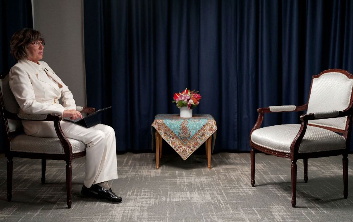 Röportajın yapılacağı salonda Reisi’nin oturacağı boş sandalye ile fotoğraf çektiren Amanpour, röportajdan önce bir yetkilinin yanına gelerek başörtüsü takmasını istediğini söyledi.
