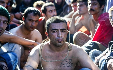 Alınlarına “İran” yazan sığınmacıların içinde göğsü üzerinde Kürdistan haritası olan bir kişi dikkat çekti.