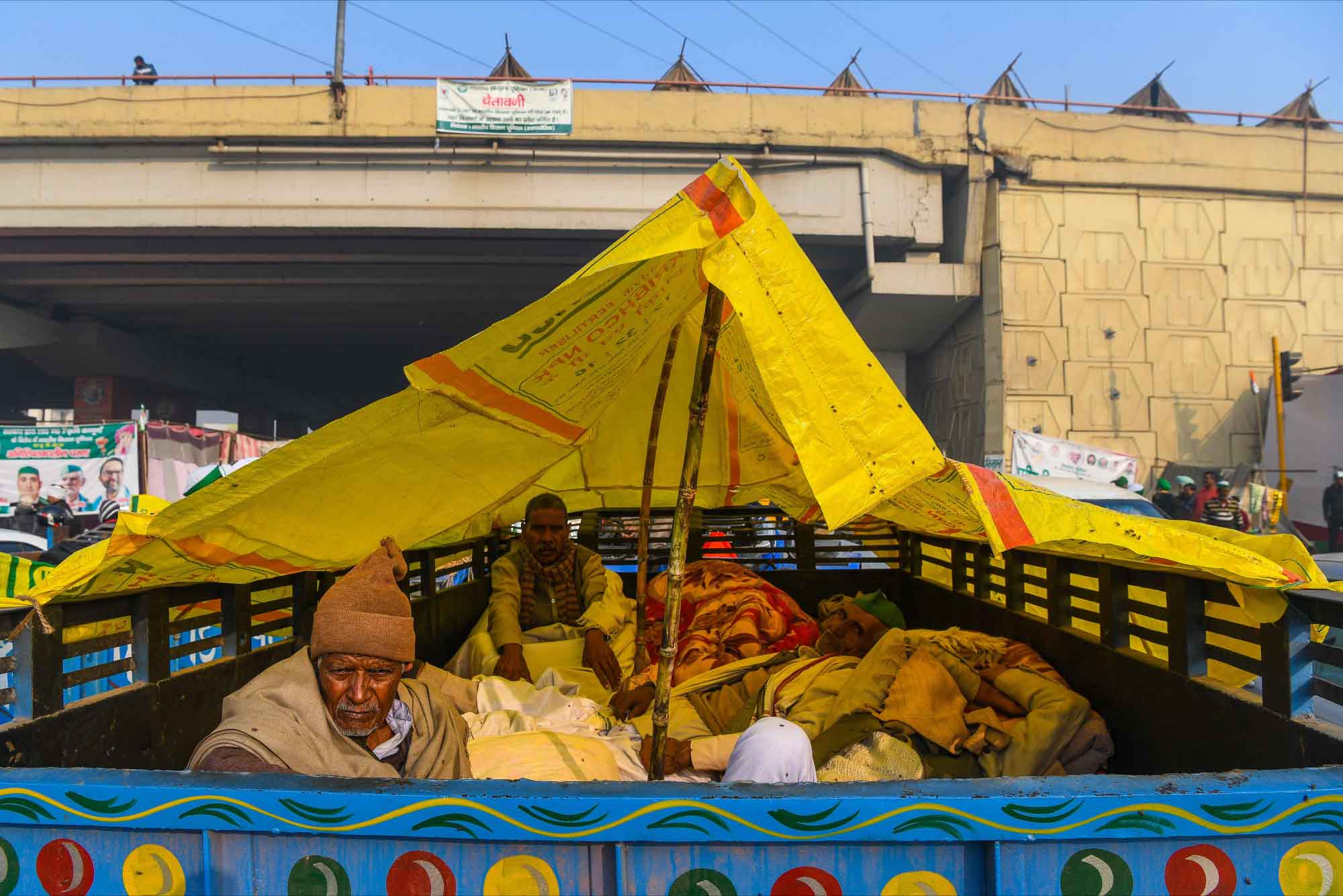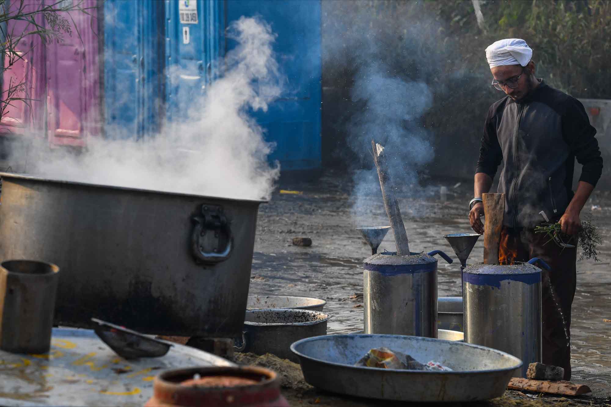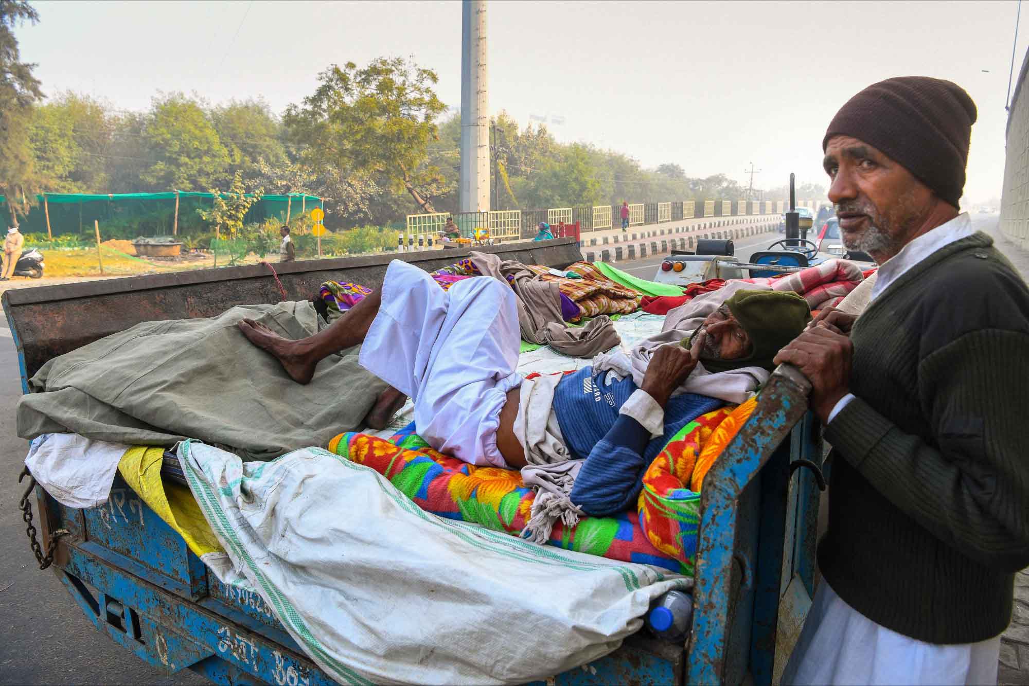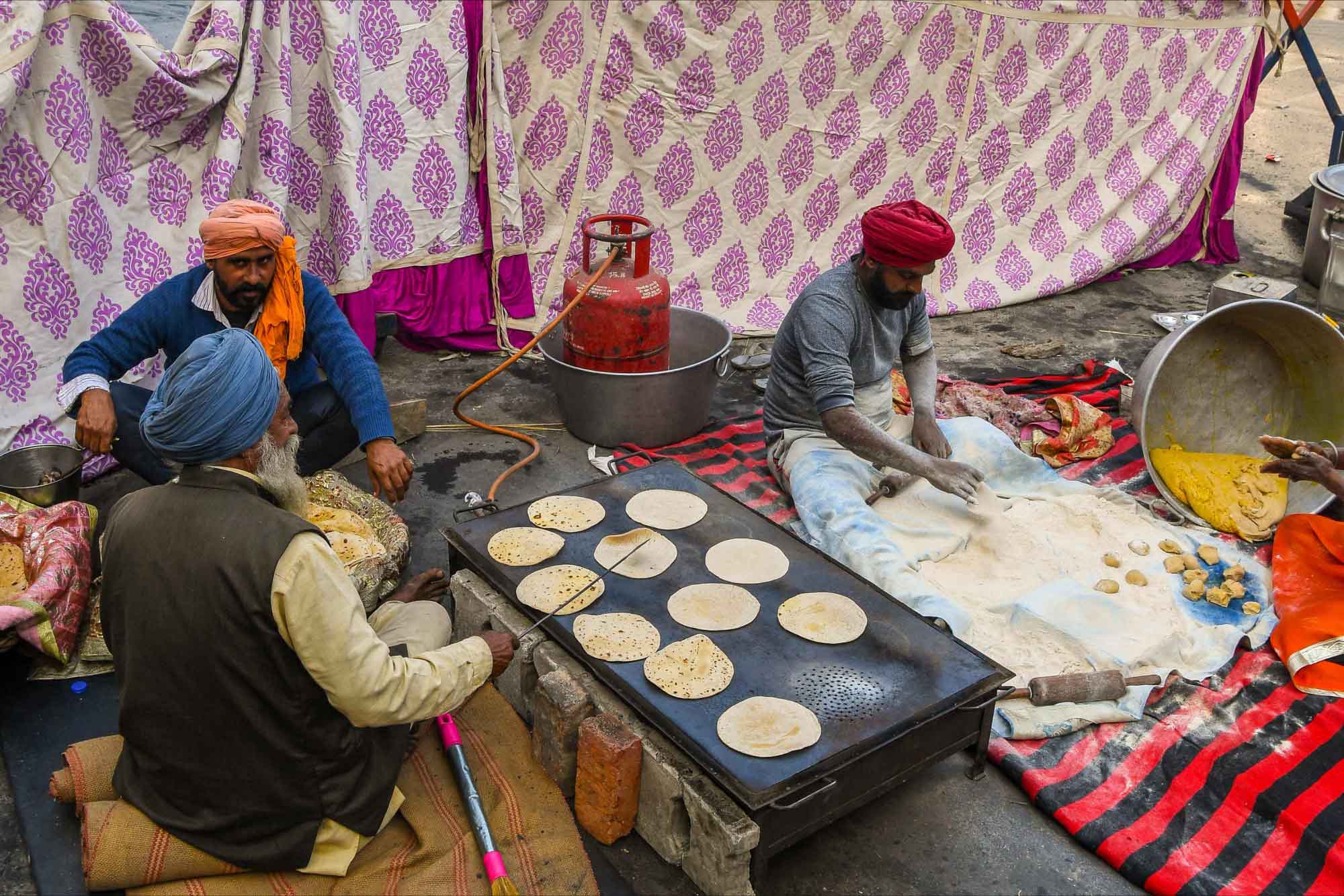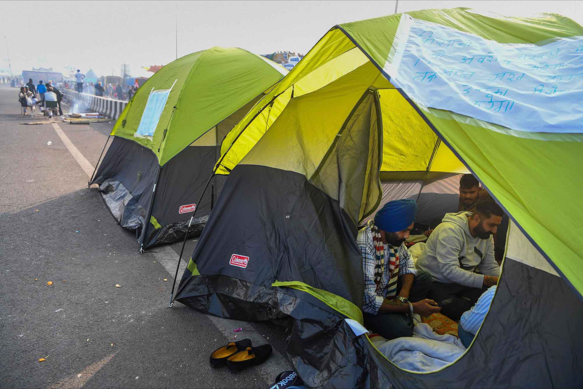 Tarlada çalıştıkları malzemelerle eylem yapan çiftçiler zor koşullara rağmen protestolarını devam ettiriyor.
