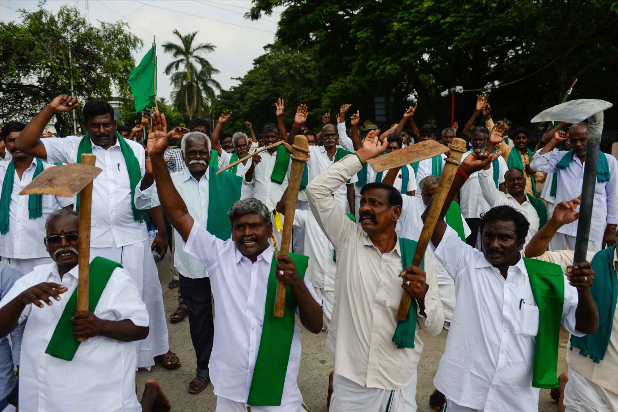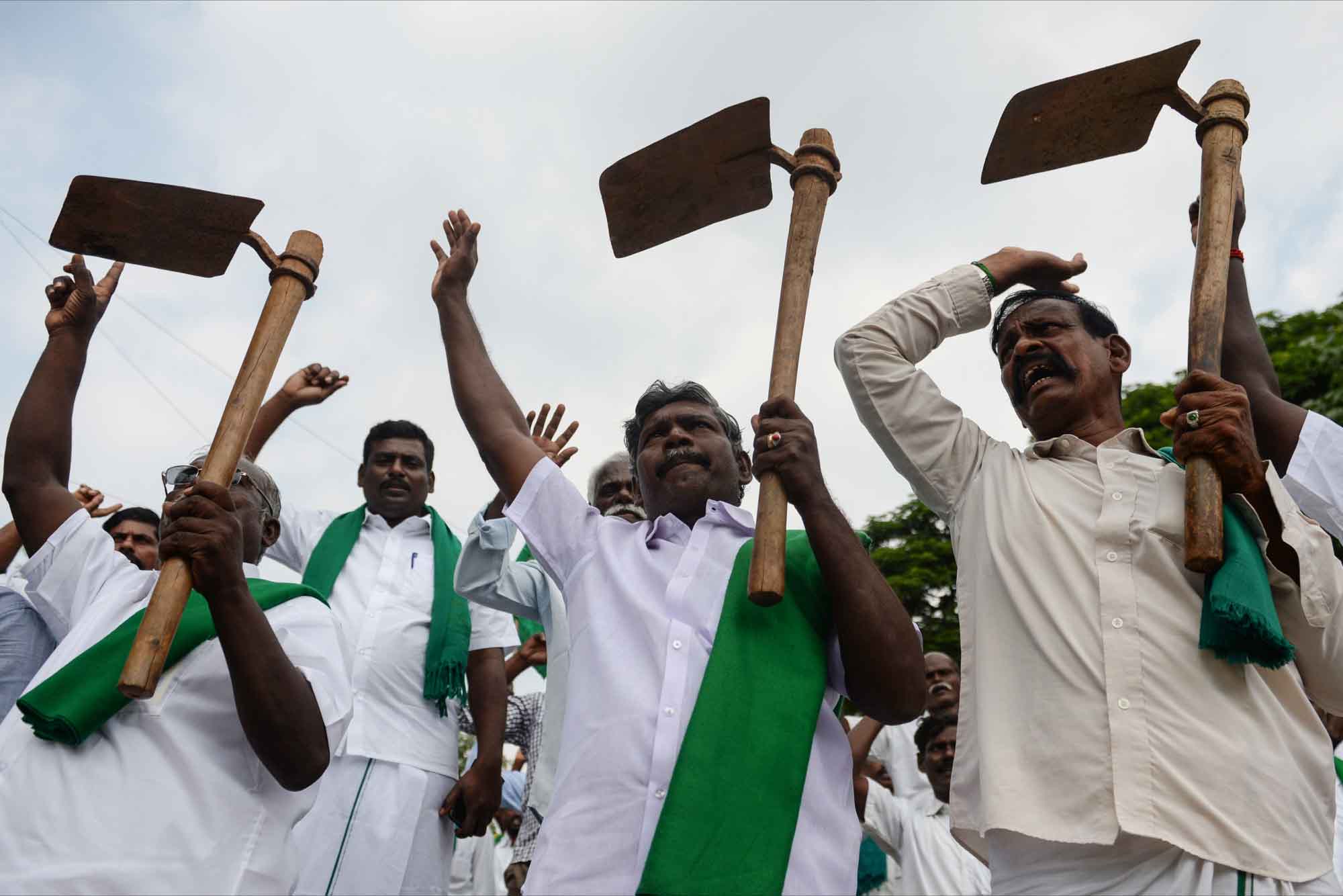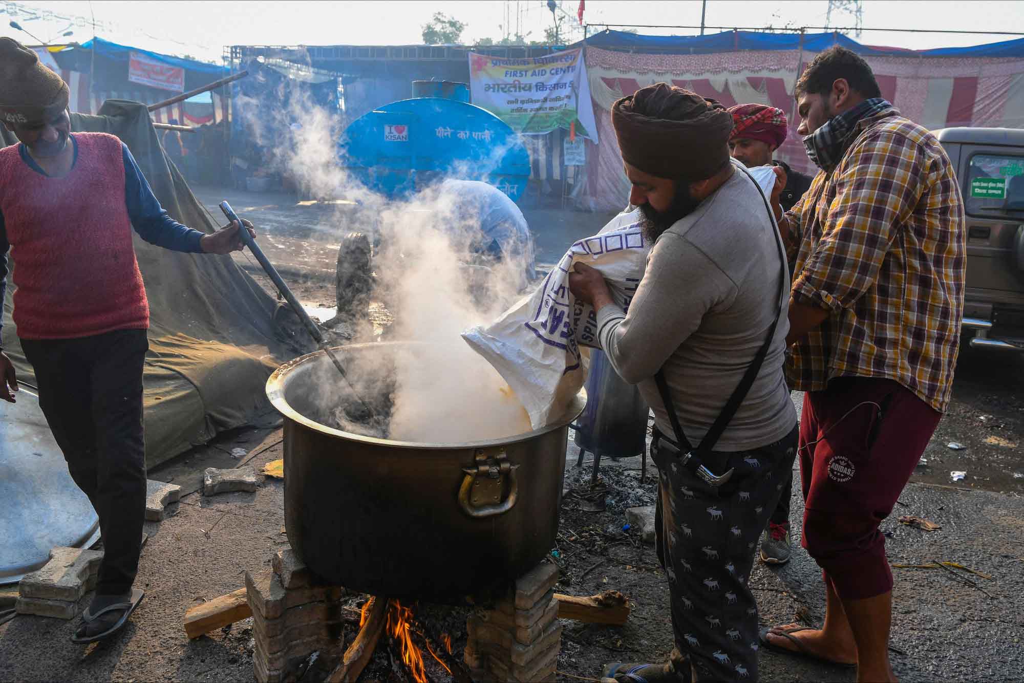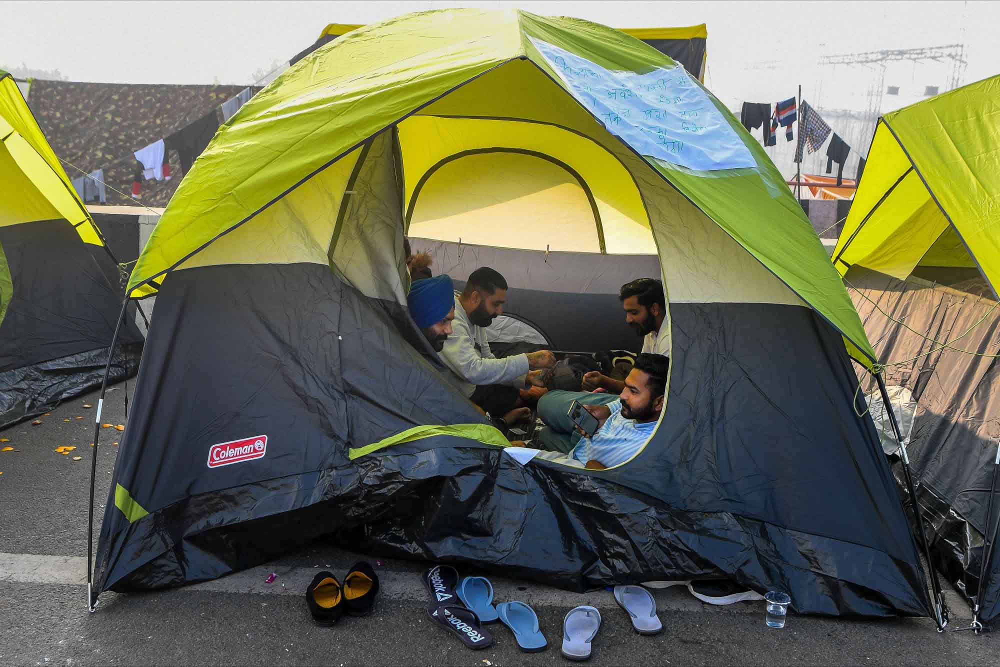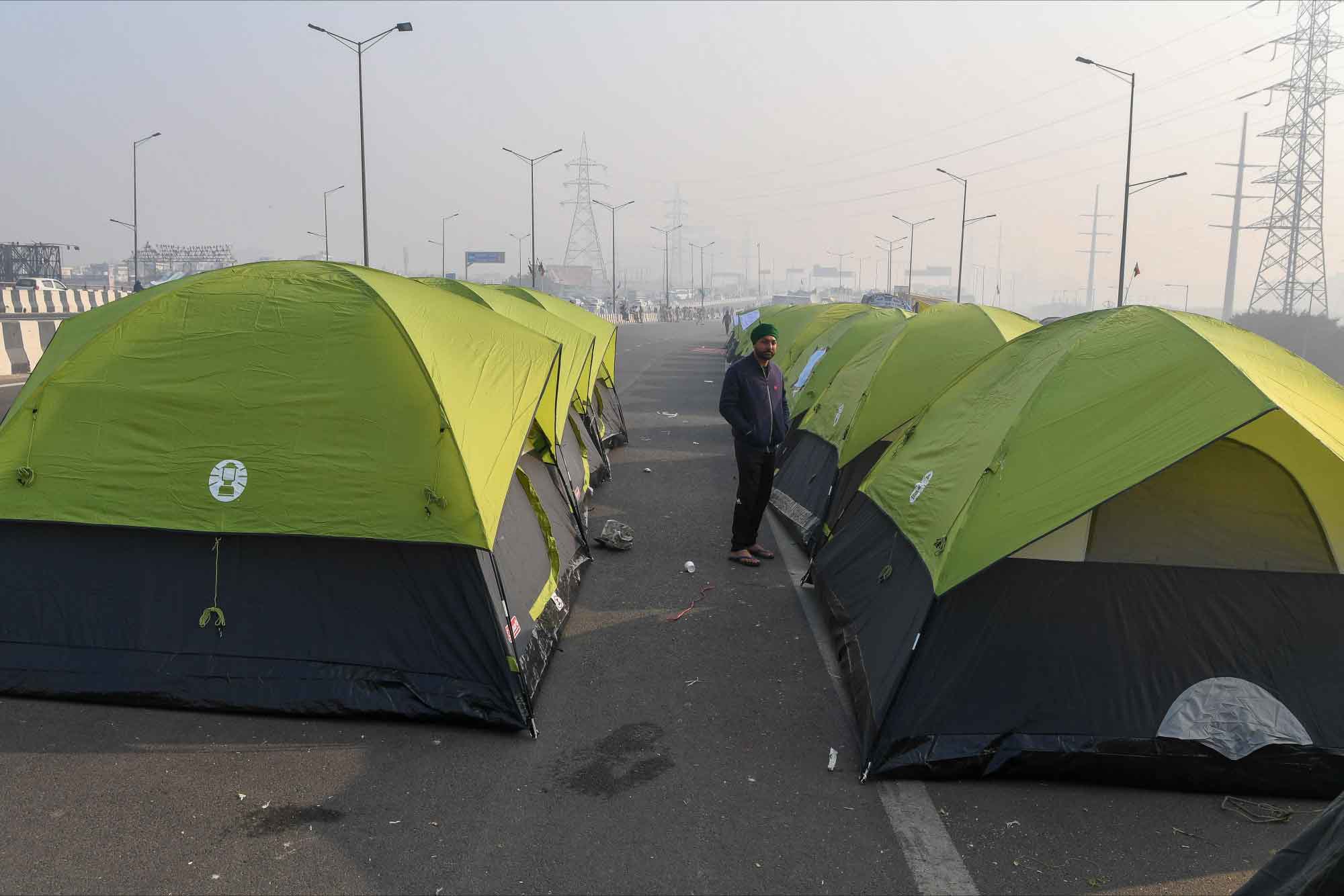 Tarlada çalıştıkları malzemelerle eylem yapan çiftçiler zor koşullara rağmen protestolarını devam ettiriyor.