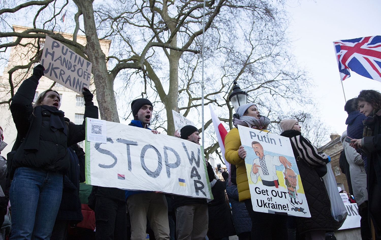 Savaş karşıtları ve İngiltere’de yaşayan Ukraynalılar İngiltere hükümetine ve Uluslararası kuruluşlara Rusya’ya yaptırım uygulanması çağrısında bulundu