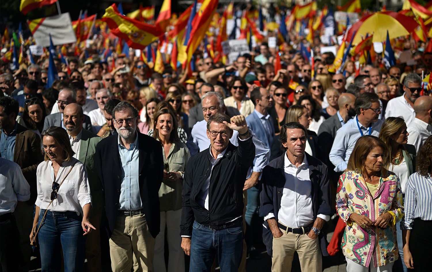 Seçimlerden birinci parti olarak çıkan ancak hükümeti kuracak çoğunluğun gerisinde kalan sağ görüşlü Halk Partisi (PP), olası bir sol koalisyon hükümetinin kurulmasına dışarıdan desteği gerekli olan ayrılıkçı Katalan siyasi partilerin af talebine karşı Madrid'de gösteri düzenledi.