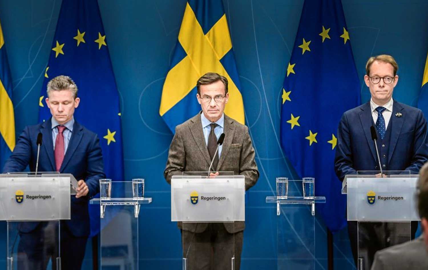 İsveç Başbakanı Kristersson, Dışişleri Bakanı Tobias Billström ve Savunma Bakanı Pal Jonson, Stockholm'de ortak basın toplantısı düzenledi.