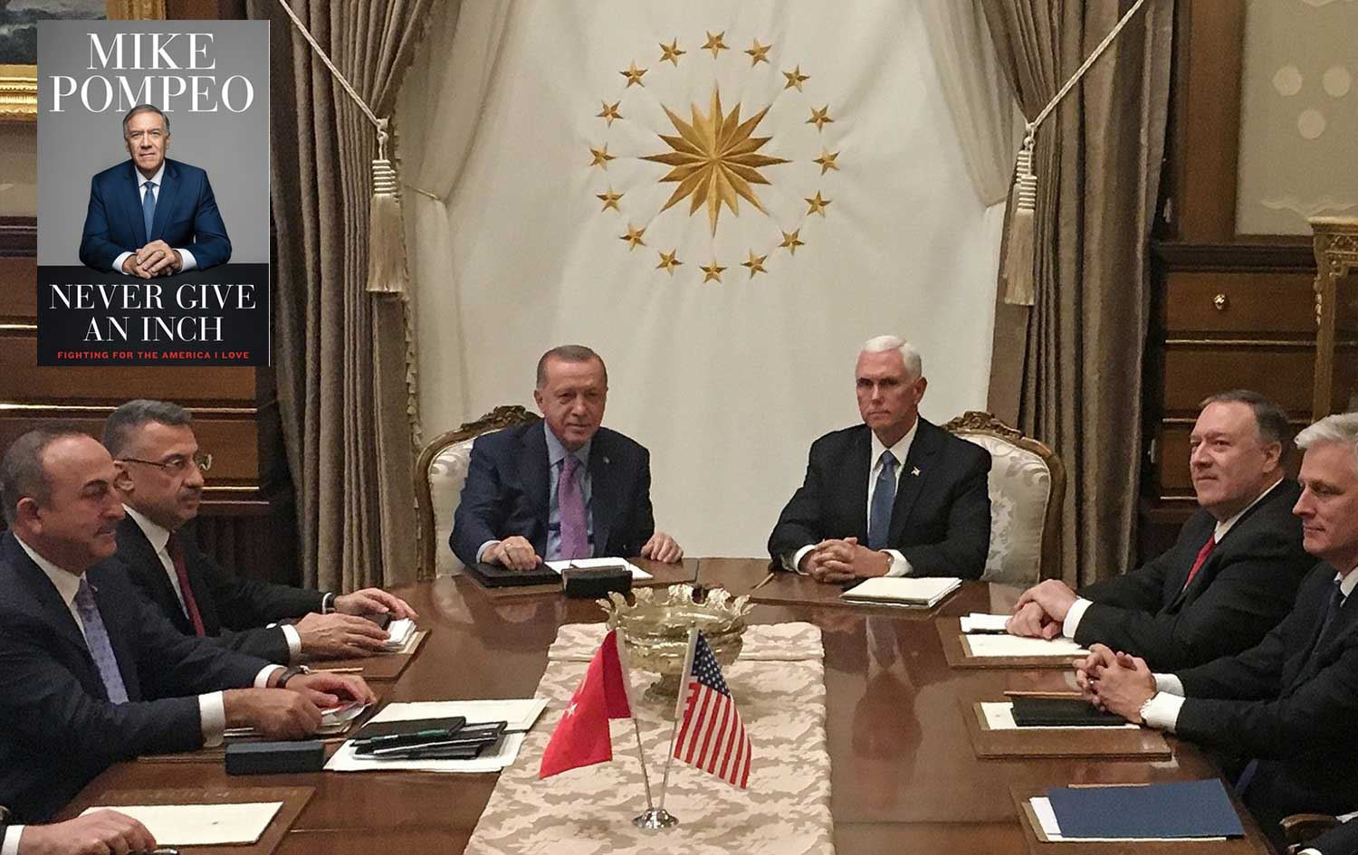 * Pompeo’nun Ekim 2019’da zamanın ABD Başkan Yardımcısı Pence ile Türkiye’ye yaptığı ziyaret ise baya olaylı geçiyor. Trump’ın Erdoğan’a olur vermesinden sonra, Türkiye Suriye’ye giriyor. Ortalık karışınca ikili bir ateşkes yapmak için Ankara’ya geliyor.