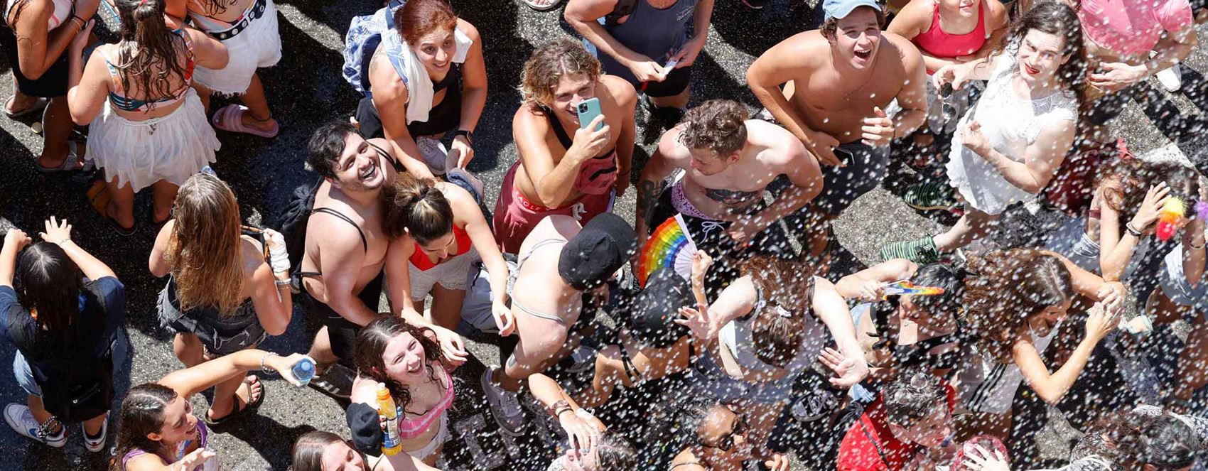 Şehir merkezinden sahil boyunca uzanan ve Arap-Yahudi karışımı bir mahalle olan antik Caffa limanına doğru uzanan şeritte yürüyenler, abartılı kostümleri ile renkli şamandıralar üzerinde dans etti.