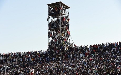 Kentteki yerel yetkililerin maça girişi ücretsiz yapmaları üzerine stadyuma koşan Nijeryalı taraftarlar hayatlarını tehlikeye atmalarına rağmen renkli görüntüler verdi.