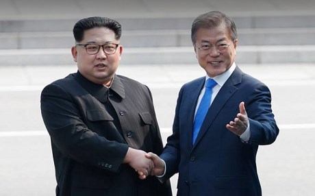 İki ülke sınırında yer alan Panmunjom Ateşkes Köyü'nde bir araya gelen Kim Jong-un ve Moon Jae-in, İki ülke liderlerinin 1950-1953 yıllarındaki Kore Savaşı'ndan bu yana üçüncü kez düzenlediği liderler zirvesinde el ele poz verdiler.