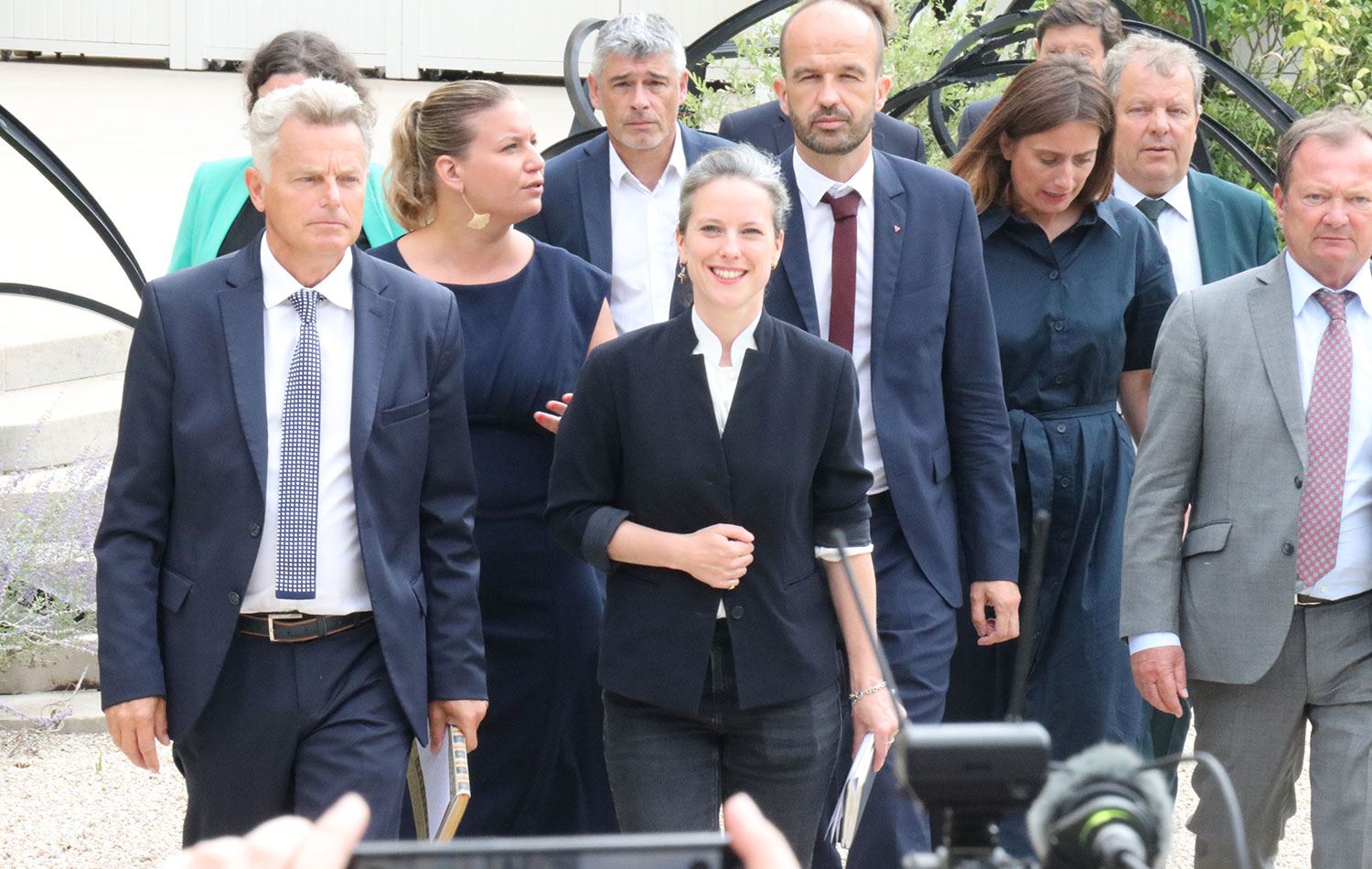 Fransa'da sol ittifakın ortak Başbakan Adayı Lucie Castets (ortada) ve sol parti liderleri Elysee Sarayı'na gitti. Castets, Fransa Cumhurbaşkanı Macron ile görüşmesi sonrası açıklama yaptı. / AA