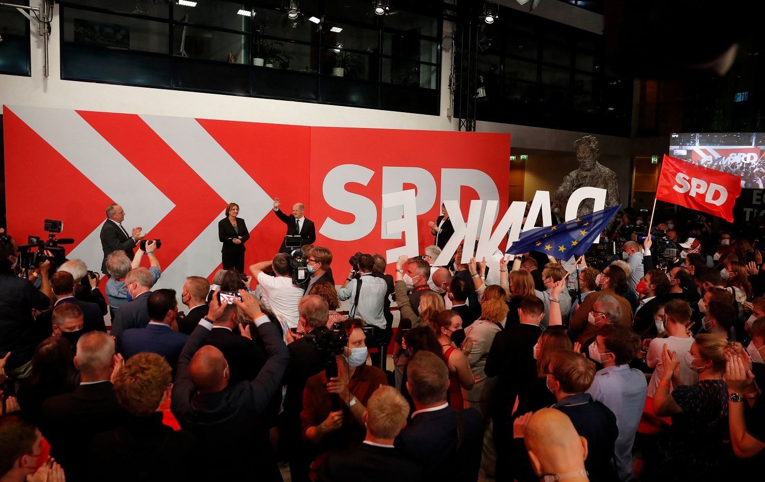 2017 seçimlerine göre oyunu 5,2 puan artıran SPD, 2002'den sonra ilk kez sandıktan birinci parti çıktı.