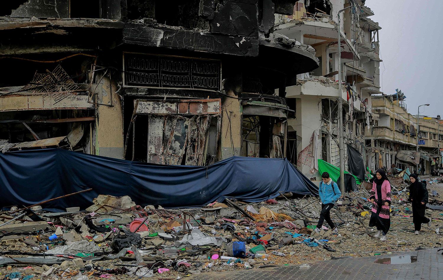 Gazze şehir merkezinde saldırılar nedeniyle yıkılan bir bina. (Fotoğraf: Omar El-Qattaa / AFP)