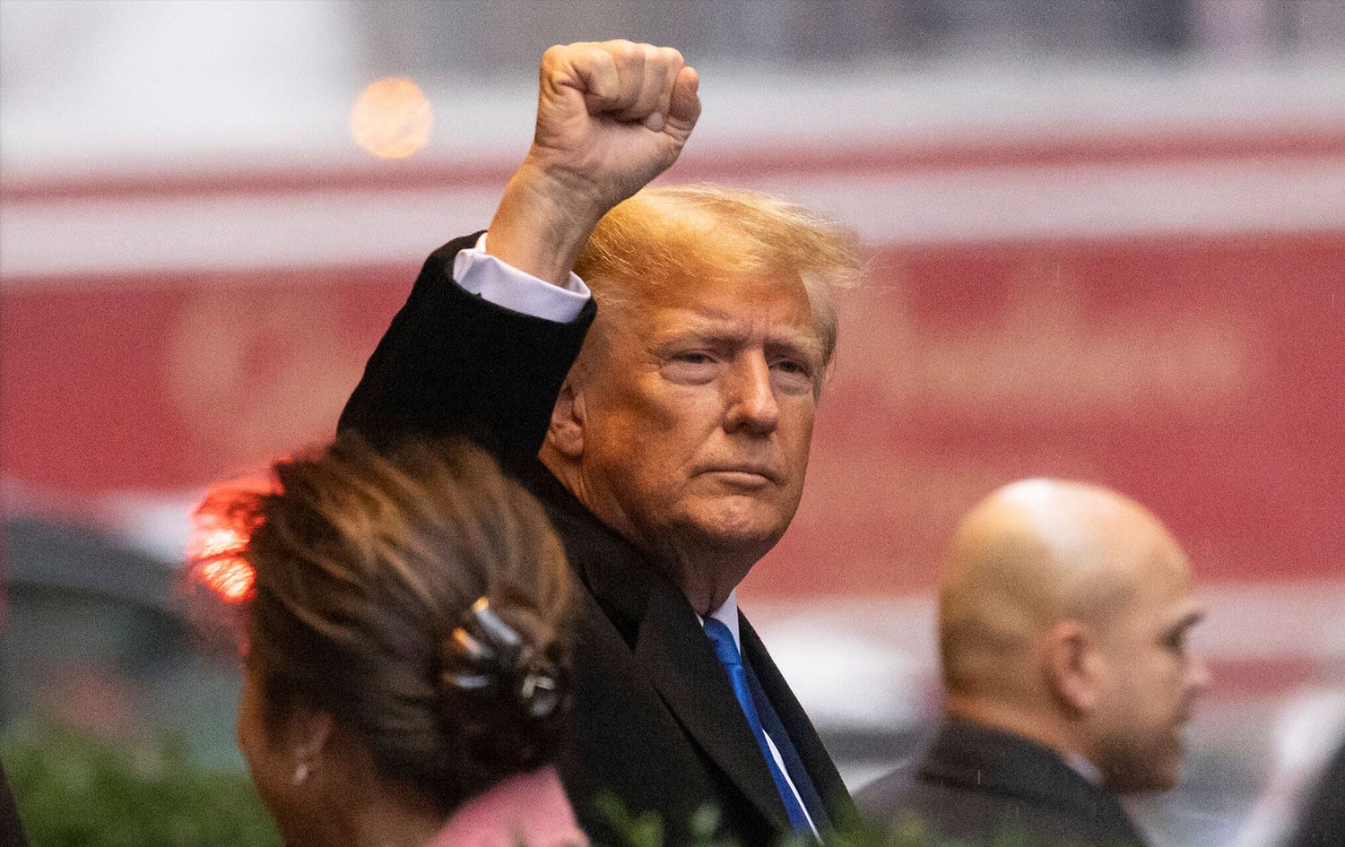 Eski ABD Başkanı Donald Trump, 25 Ocak 2024'te New York'taki evinden ayrılırken yumruğunu kaldırıyor Foto: AP / Yuki Iwamura .