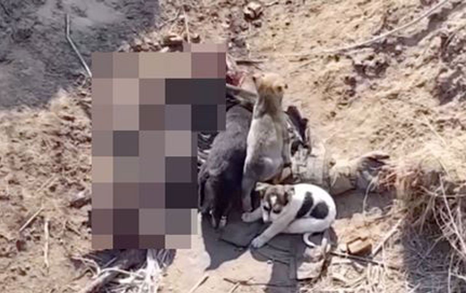 Telegram'da yayınlanan kısa videoda, 3 yavru köpeğin Ukrayna'da cephede ölü bir Rus askerinin cesedini kemirdiği görülüyor. Cesedin çürüme miktarı, haftalardır boş bir arazide olduğunu gösteriyor.