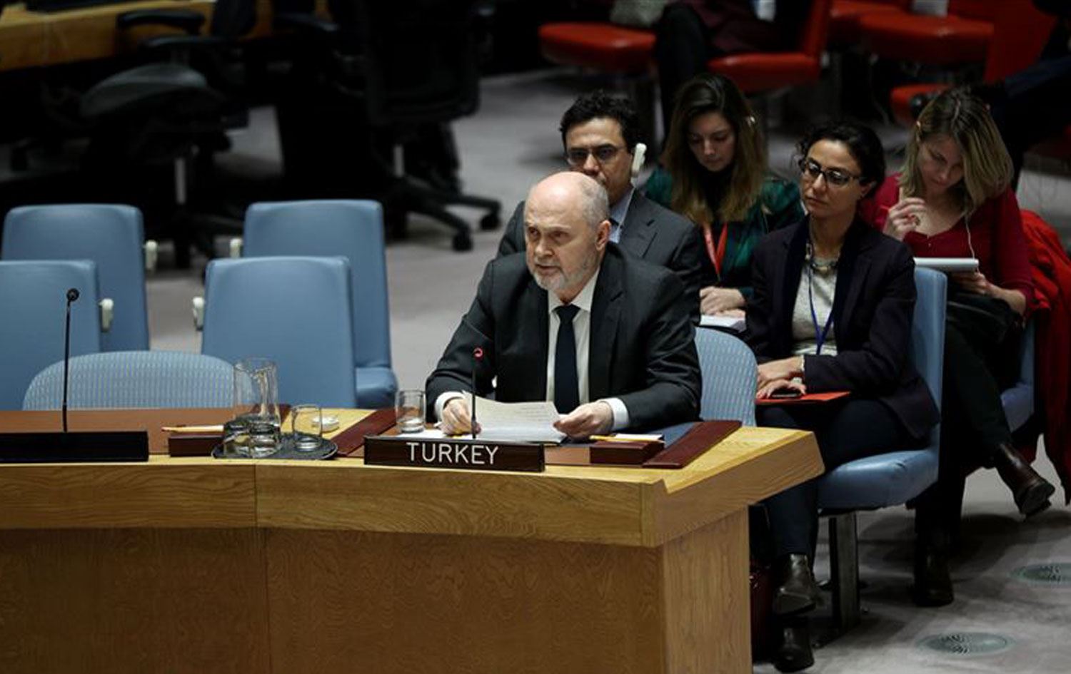 ''Bu doğru ile yanlış arasında bir mücadele ve Türkiye tüm bu çabaları, çoğu kadın ve çocuk milyonlarca sivili korumak için uluslararası toplum adına üstleniyor. Hepiniz bitmez tükenmez çabalarımız için bize teşekkür ediyorsunuz ama sizden istediğimiz minnettarlık değil, bu sorumluluğu paylaşmanız. Milyonlarca sivilin kaderi bizim ortak sorumluluğumuz. Bu konseyin artık yeter deme ve rejimin savaş suçlarına ve uluslararası barış ve güvenliği doğrudan tehdit eden pervasız davranışlarına son verme vakti geldi. ''