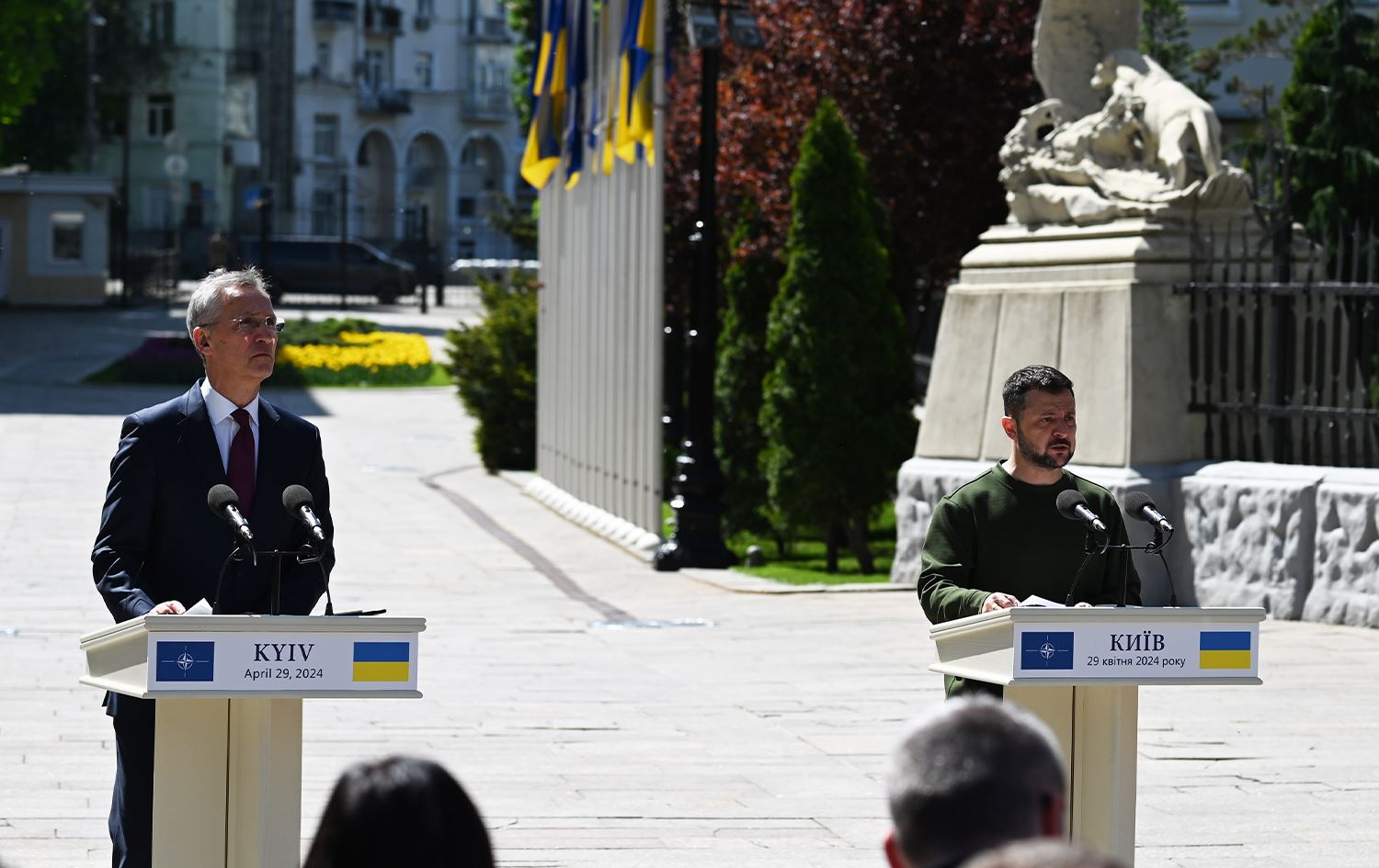 Stoltenberg, Ukrayna Devlet Başkanı Volodimir Zelenskiy ile başkent Kiev'de düzenlediği ortak basın toplantısında, askeri yardımların gecikmesinin savaş alanında "ciddi sonuçlar doğurduğuna" işaret etti.