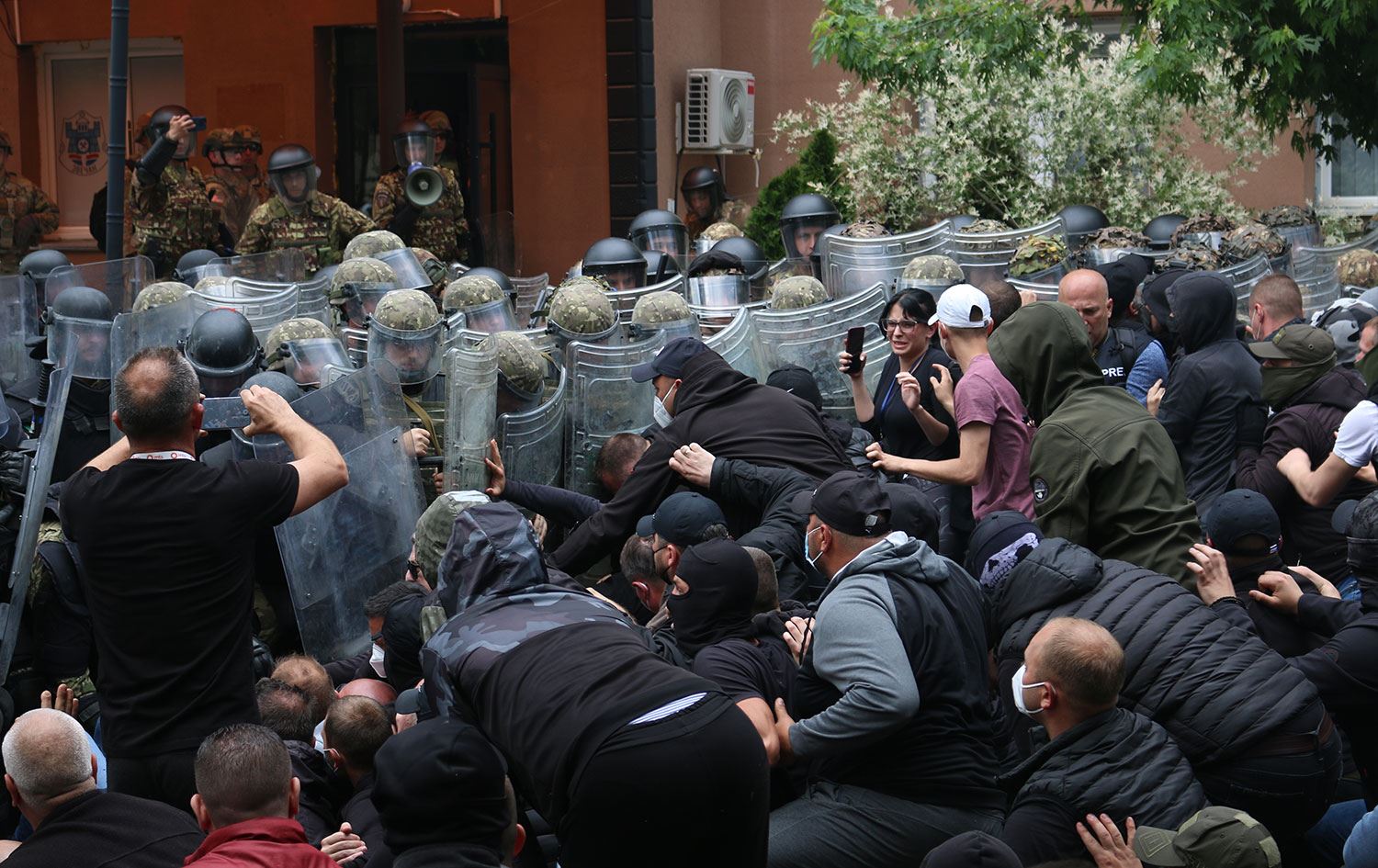 Kosova polisinin belediye binalarından çekilmesini ve yeni seçilen Arnavut belediye başkanlarının görevlerine başlamamasını talep eden Sırplar, sabah polis kordonunu aşarak belediye binalarına girmeye çalışmıştı.
