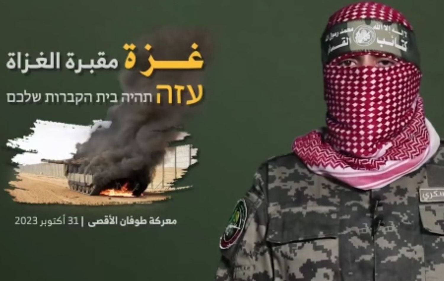Kassam Tugayları Sözcüsü Ebu Ubeyde, yayımladığı video mesajında Gazze Şeridi'nde tutulan İsrailli ve yabancı uyruklu rehineler hakkında konuştu.