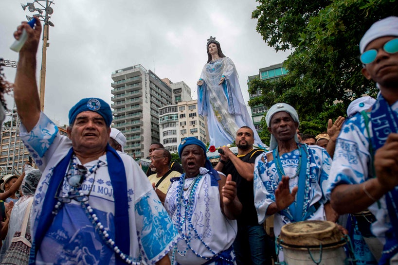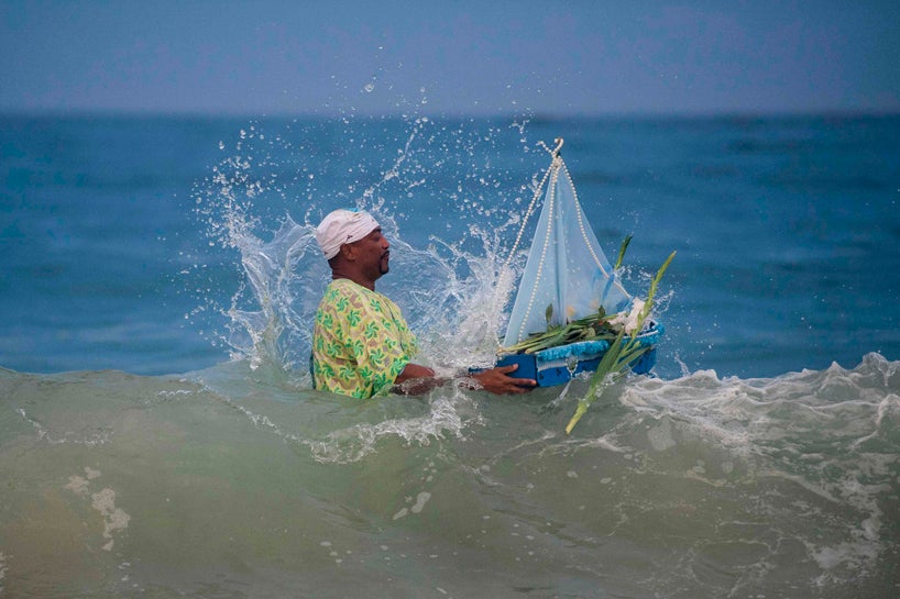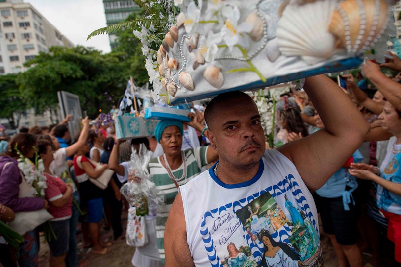 AFP - Bir Afro-Brezilya dini olan Umbanda inancına mensup kişiler, Brezilya’nın Rio de Janeiro kentindeki Copacabana Plajı’nda deniz tanrısı Lemanja’ya hediyeler sundu. Bu inanca mensup 1 milyon kişi olduğu düşünülüyor.