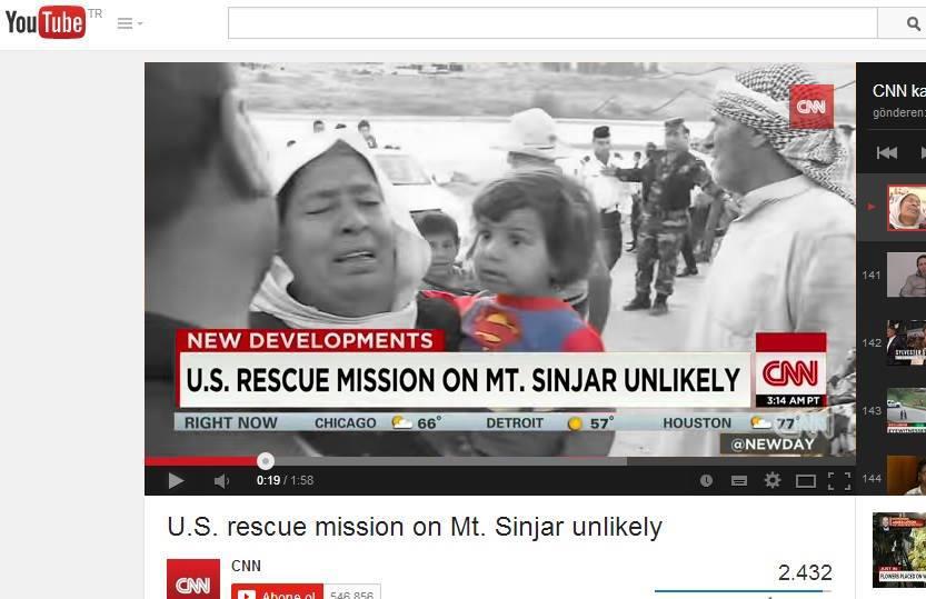 6 ) şengal'e saldıran işid barbarlarından günler süren kaçıştan bir kesit; saddam sömürgeciliği ve amerika'nın onyıllar süren savaştan sonra cehenneme dönen ırak'da adeta bir film stüdyosundaymış gibi hazırlanmış ortamda oluşan 'canavarın' şerrinden kaçanlar ile amerikan 'özgür dünyanın' koruyucu ikonu olan 'bir hollywood kahramanı' superman temsilinin cnn'de biraradaki görüntüsü...