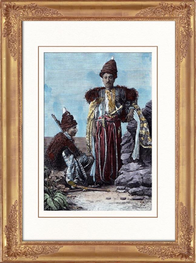 Kürdistan'dan eski kareler; Kürt savaşçılar, avcılar.